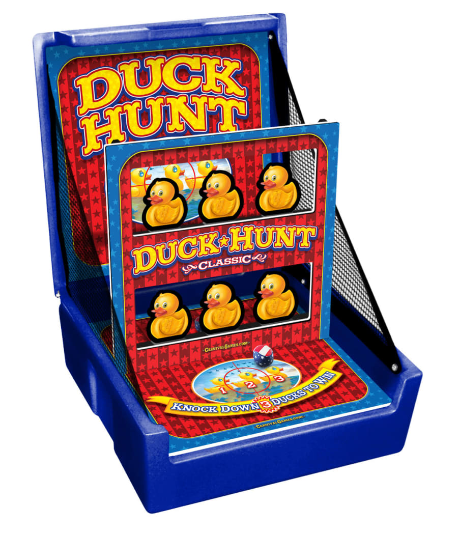 Duck Hunt classic carnival game rental come with legs that stand about 4' tall making it perfect for school age kids right at their height. The game can also be place flat on a table top making it perfect for older kids and event adults.