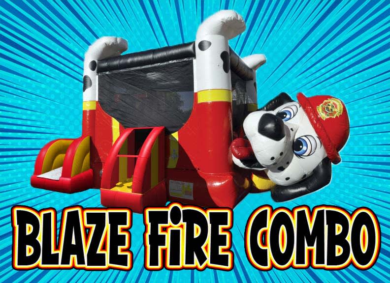 Blaze Fire Combo for rent is a medium size combo unit for rent measuring 20x16x16 and will fit into most yards. Blaze Fire Combo for rent is made up of a 13x13 full size jumper with a slide attached. The Fire Truck Combo unit for rent is great for kids of all ages. Blaze Fire Combo rental features a tall slide coming out the side making it a safe choice for kids of all ages. Blaze Fire Combo rental Sacramento has a inflatable basketball hoop on the inside along with some pop ups that kids love to push down and jump on. Blaze Fire Combo jumper rental is compact combo size and is perfect size to fit in most yards. A&E Air jumpers has a large selection of wet combo rentals, inflatable interactive games and much more.