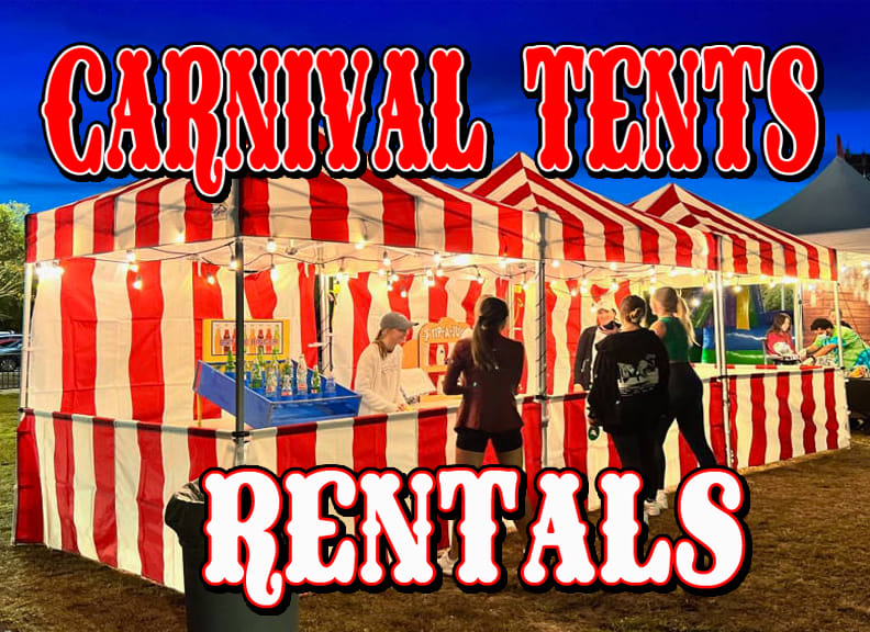 A&E Air Jumper party rentals has a large selection of Carnival themed, games, decoration and tents. Our classic carnival game tent rentals are the classic Red and White stripes complete with a back drop and side walls making the look and feel of a traditional carnival. Carnival tents are commonly used to create a festive and fun atmosphere for various events such as carnivals, fairs, festivals, fundraisers, birthday parties, and corporate events. These tents are often colorful and can vary in size to accommodate different A & E Air Jumper Party Rentals has 10 Carnival Tents for rent Sacramento. A& E Air Jumper Party Rentals along with any necessary setup and teardown services we also can include additional items like sidewalls, lighting, Carnival Themed tables, chairs, and other carnival games to make it feel like a nostalgic carnival that you grew up to love.
