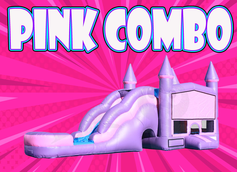 Pretty-n-Pink combo for rent Sacramento is a full size standard bounce house 13x13 unit with a tall, long slide attached on the side. Pretty-n-Pink combo for rent Sacramento is a larger combo unit and offers 6 different actives for the kids to enjoy. Every little girl with fall in love with this cute, Pink and purple combo unit and her and her friends will enjoy jumping, sliding, climbing, bouncing their way into the best birthday party ever. Pretty-n-pink combo unit rentals has a little something for everyone and even comes with an inflatable basketball hoop on the inside. Pretty-n-pink combo for rent requires a long narrow space approx. 32 long x14 wide x16 tall, it still fits in most larger yards and requires a long narrow space. Pretty-n-pink combo for rent features the tallest slide available in a combo unit; because of the height of the slide it is recommended for children 4 years or or older, or younger children that can climb really well. If you have a princess in your life and are looking for the perfect princess party idea this combo rental Sacramento is for you. The Pretty-n-pink combo for rent also can be used with water and the huge slide can be transformed into a water slide complete with a pool at the bottom.