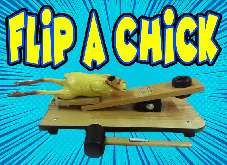 Flip a chick classic carnival midway game allows 1 (ONE) player at a time to get the rubber maillot and slam the target as has as they can to see the chicken Fly, Flip and spin in to the different buckets. Each bucket being easier or harder to get the chicken into. Don't be fooled this takes skill. This classic Carnival Game Rental Sacramento is great for all ages.