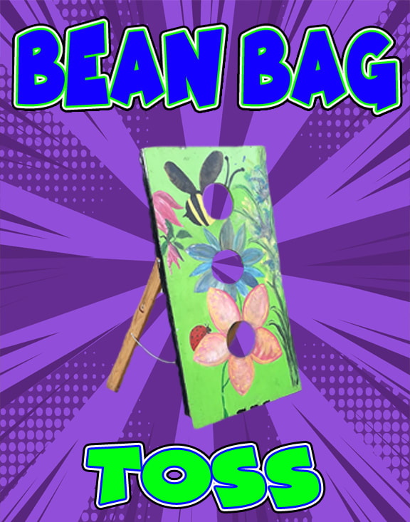You can't have a carnival theme party with out a classic Bean Bag Toss. Bean Bag Toss uses bean bag and the player toss or throws the bean bag into the custom painted board with holes cut in to it.