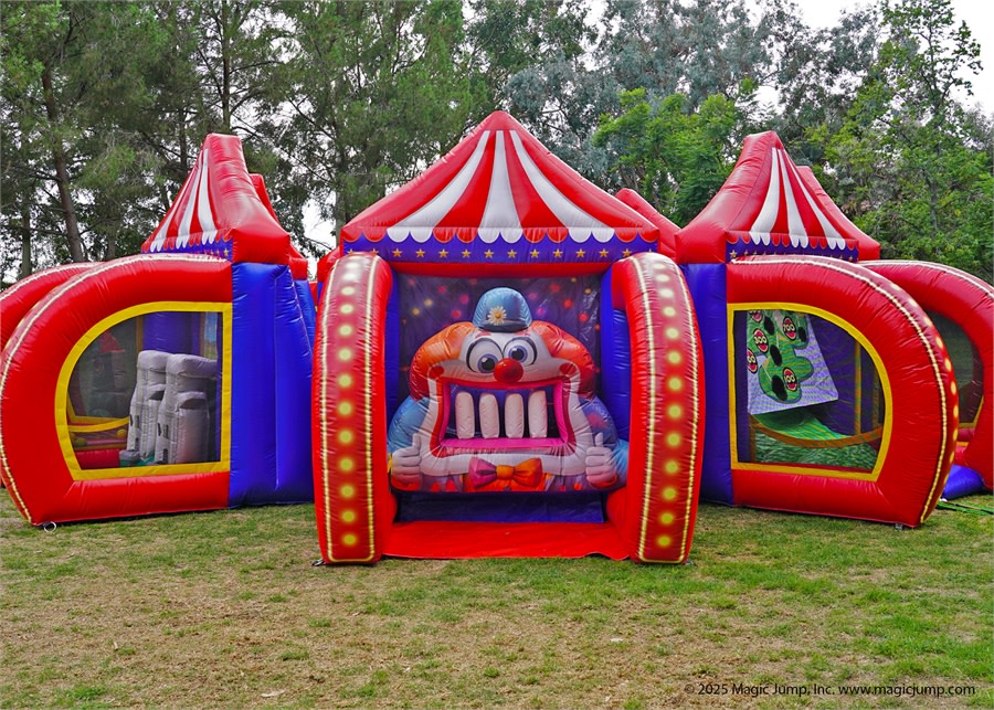 The Clown Tooth Knockout is a bright, eye-catching inflatable that turns any event into a carnival highlight. Built for excitement, this interactive game challenges players to toss bean bags and knock out all four clown teeth. Perfect for Carnival Game Rentals and Interactive Games lineups, the Clown Tooth Knockout draws crowds and keeps lines moving. π