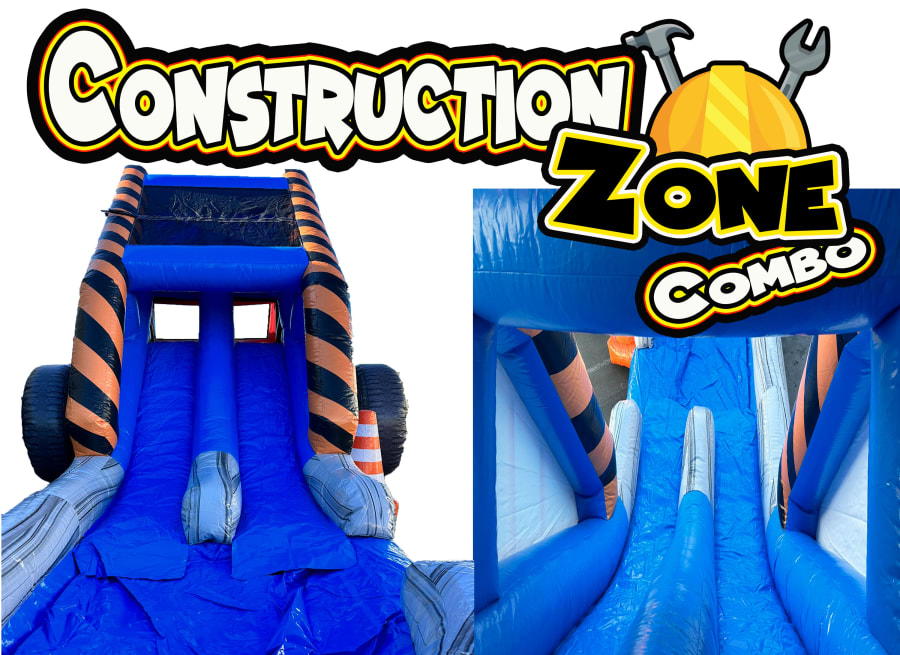 Prepare for an explosion of excitement at your party with our Construction Zone Dry Combo – set to be the highlight of the celebration! The larger-than-life dump truck becomes the focal point, sparking your child's imagination and creating a festive atmosphere. Even without water, the double-lane slide promises thrilling fun, providing an exhilarating experience for everyone.