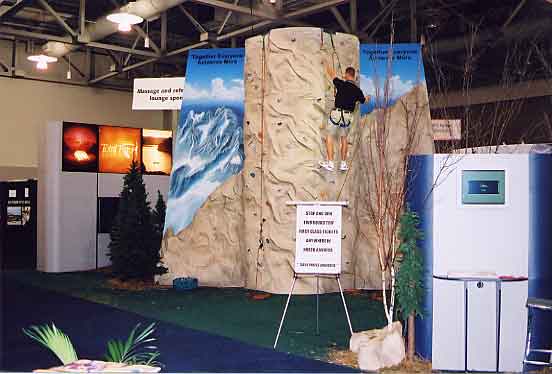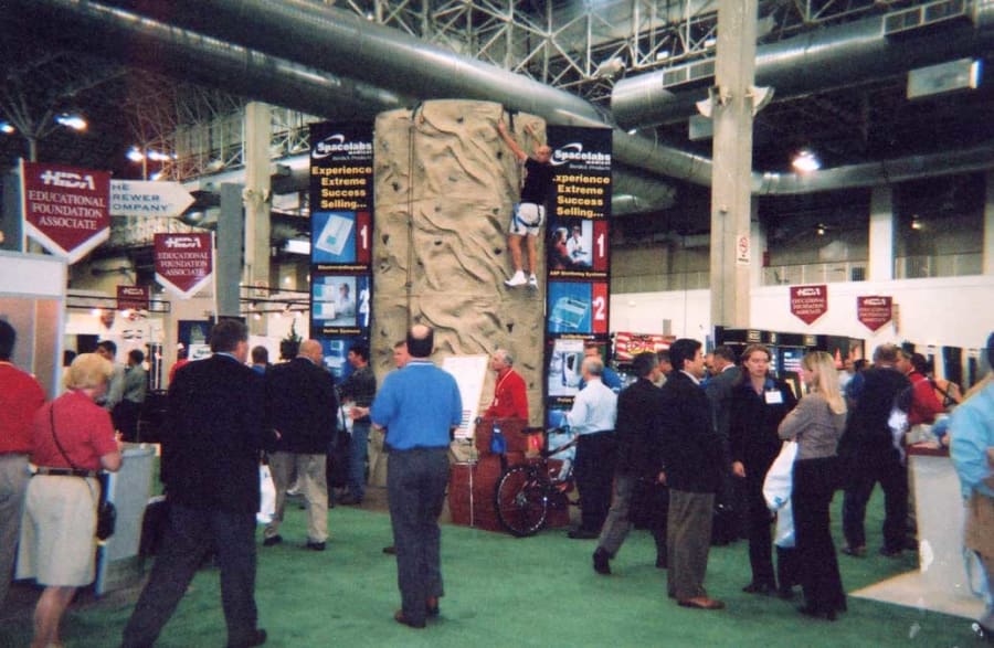 A lot of companies rent the conventional rock wall rentals for trade shows. Rockwall grab the attention of your target audience and helps brings them to your booth. The Rock wall will get their attention and then it is up to you to sell them on your product. Rock wall rentals at trade show can help break up the monotony of going booth to booth collecting pens, sunglass, bags, and brochures. Give your potential clients something to remember your company or brand from by renting a conventional rock wall.