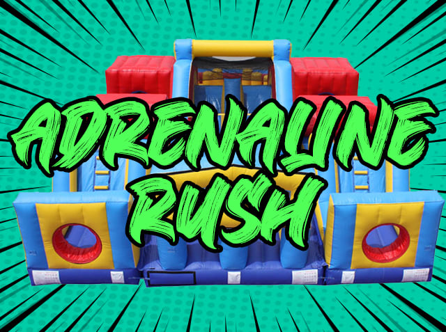 The Adrenaline Rush II is a fill with endless hours of fun. The Adrenaline Rush is sure to be the hit of the party. The Adrenaline Rush Obstacle course is great for races, team building actives, corporate events, sober grad nights, after prom parties, school dances, college events, school carnivals, VBS, Church gatherings and the list goes on.