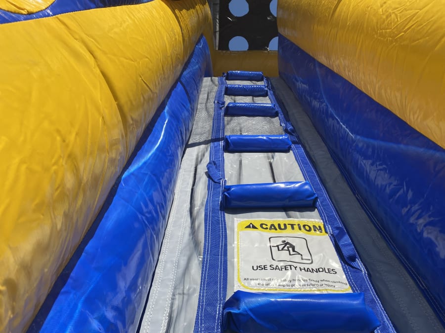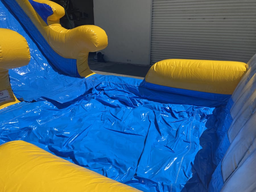 The 16' monstrous inflatable water slide for rent is a water land escape for those hot summer days. The 16' monstrous water slide for rent has a full size pool at the bottom of the slide. The 16' monstrous water slide for rent is the perfect water slide rental for young kids all the way up to teenagers. It is filled with endless hours of fun, Sure to be the hit of the party. The 16' Monstrous inflatable water slide for rent Sacramento is the a great slide. You will not be disappointed with the 16' monstrous water slide for rent Sacramento. The 16' monstrous water slide for rent Sacramento fits into most budgets and yards. With the 16' monstrous water slide rental Sacramento has a classic design with stairs going up the left side and an extra wide sliding are on the right. The classic design of the 16' monstrous slide for rent allows for for a easy flow and access for the users. The 16' monstrous water slide for rent is perfect for kids of all ages. The 16' monstrous water slide rental is 11' wide x 26' long x 16' tall making the monstrous water slide for rent perfect for smaller yards in Sacramento. The 16' monstrous water slide for rent has a platform height (platform is where you sit down to slide down) of 12' and is the tallest platform height for a 16' inflatable water slide rental.
