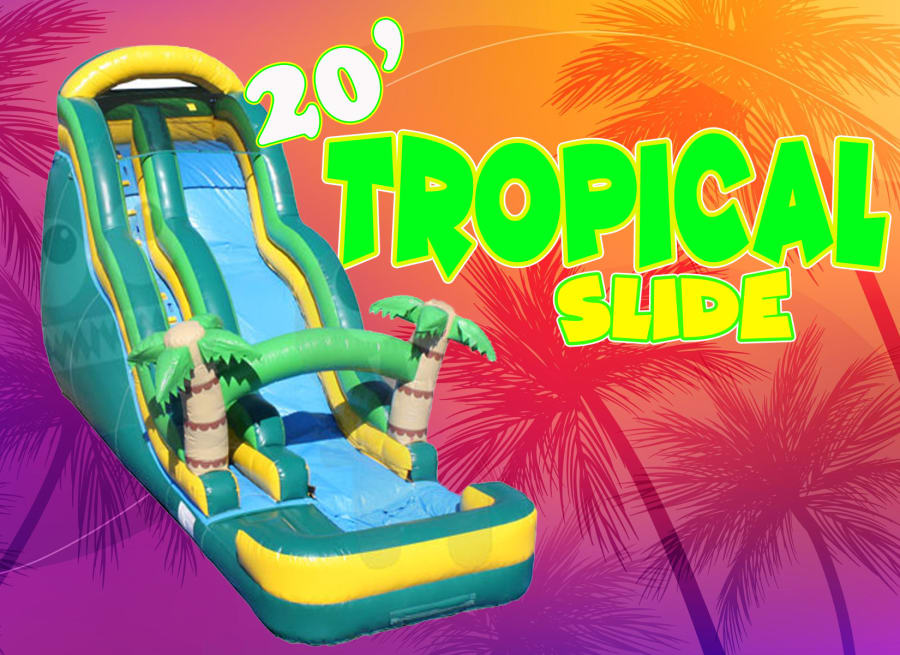 This 20' Tropical Bliss slide can be used wet or dry. This 20' Tropical Bliss slide is the perfect slide for young kids all the way up to teenagers. It is filled with endless hours of fun, Sure to be the hit of the party.