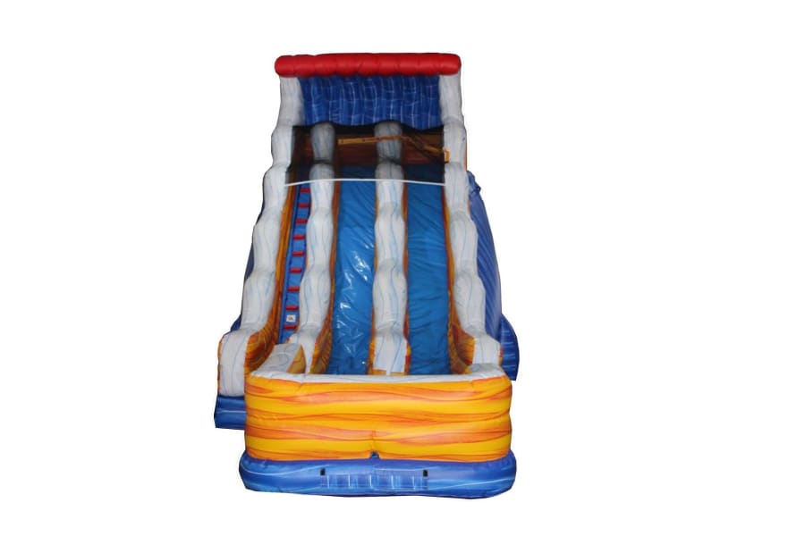The 22' double lane giant lighting water slide for rent Sacramento features a large padded landing pad making it the perfect ending to a thrilling water slide down the 22' tall giant water slide rental. The 22' double lane water slide is a great addition to any summer time birthday party and a great way to escape the heat of Northern California.