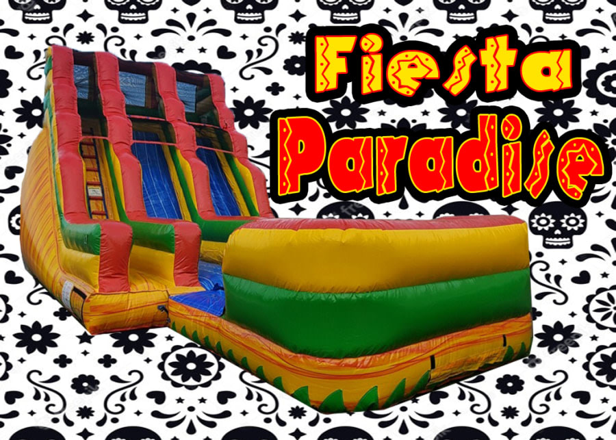 This 20' Fiesta Paradise DOUBLE LANE dry slide is one of the largest slide we offer. Standing 20' tall it is one of the tallest water slides in Northern California. You will need a area 36' long x 20' wide x 20' tall. Double Trouble..... double the fun with double the lanes. The best part of this unit is in the heat of the summer it can also be used wet. The double lane 20' fiesta paradise can be used dry. Make it even better and double the fun by attaching a slip in slide to the end, increasing the sliding platform by 40'. This 20' Fiesta Paradise can be used wet, dry or as a combo unit with a matching attached slip in slide. 20' Fiesta Paradise slide is the perfect slide for young kids all the way up to teenagers and even adults. It is filled with endless hours of fun, Sure to be the hit of the party.
