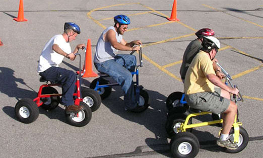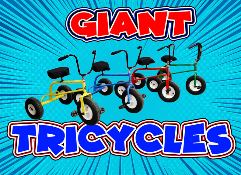 Picture this: Two Giant Tricycles ready to roll, accommodating most adults, weaving through a strategically set cone track. It's not just a ride; it's a chance for your guests to let loose, have a blast, and perhaps make a few comedic memories along the way.