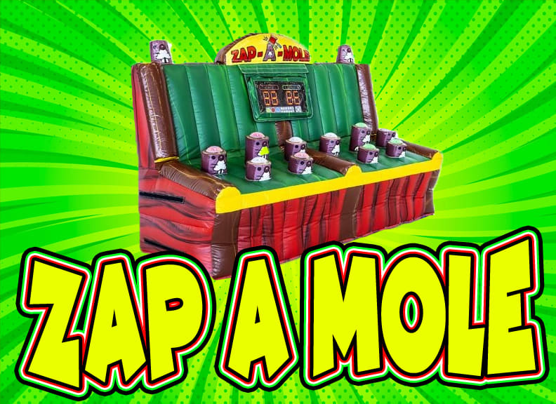 Wack a Mole has been around for decades and was made popular in arcades. Zap a mole allows 2 players to play at a time and like wack a mole the object of the game is to wack as many moles as possible. Zap a mole has a twist, you only want to wack your color mole. The IPS light system uses the latest technical and there are 10 lights that randomly light up RED or GREEN. If you are on the red team you want to hit all the red lights. The best part is there is a score board that keeps track of the score and there is a real winner and looser to this game. Kids love beating their friends or siblings and keeps them coming back time and time again. Each game is 45 seconds long allowing for a nice even flow of players threw the game. Zap a mole is great for school events, backyard birthday party, corporate events, fall festivals, school carnivals, church event and so much more. Zap a mole allows for up to 120 players to participate every hour making it ideal for large events with a lot of precipitants.