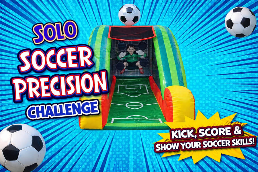 Solo Inflatable Solo - Soccer Precision Challenge allows for 1-2 players to battle it out to see who has what it takes to have the top score. Solo - Soccer Precision Challenge for rent is a great choice for a large groups and allows for a large amount of precipitants to cycle threw the Solo - Soccer Precision Challenge and other sports games in a short period of time. Inflatable Solo - Soccer Precision Challenge can be used with just 1-2 players battling it out or is also great for team building activities in which the whole team collectivity with the highest score WINS!