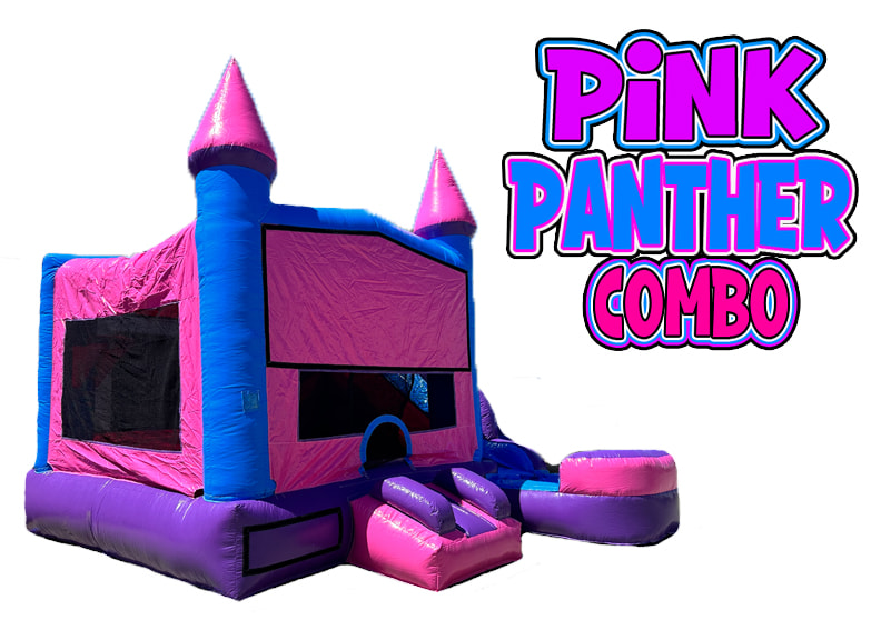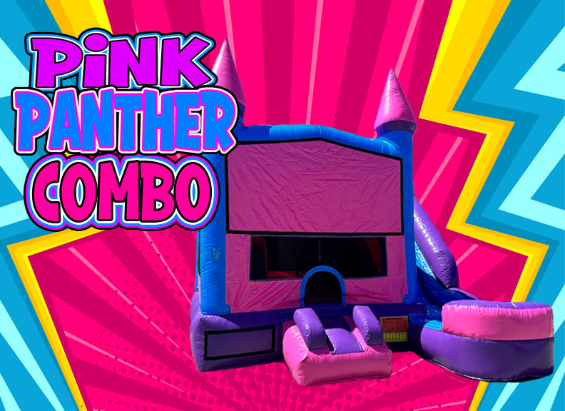The Pink Panther Water combo for rent is a medium size combo unit for rent measuring 20x16x16 and will fit into most yards. Pink Panther Water combo for rent is made up of a 13x13 full size jumper with a slide attached. The Pink Panther Water combo unit for rent is great for kids of all ages. Pink Panther Water combo unit rental features a tall slide coming out the side making it a safe choice for kids of all ages. The Pink Panther Water combo unit rental Sacramento has a inflatable basketball hoop on the inside along with some pop ups that kids love to push down and jump on. This Pink Panther Water combo jumper rental is compact combo size and is perfect size to fit in most yards. A&E Air jumpers has a large selection of wet combo rentals, even better the Pink Panther Water combo unit for rent can be turned into one of your child's favorite cartoon jumper with one of our over 50 cartoon jumper panels.